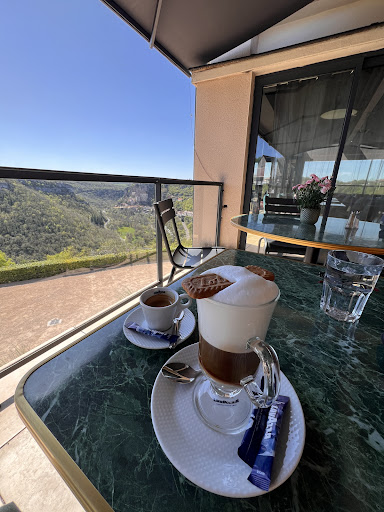 Poor service, initially asked to reserve a table on the terrace next to barrier for unobstructed view of the village for lunch the following day, told tables could not be reserved. Came back short time later as these tables were free to eat that evening only to be told they had already been reserved. What a contradiction. Against my better judgement decided to eat at this restaurant, which I later regretted. The wine was pleasing, first course, trotters was lovely, after a good start it went downhill. The cassoulet with confit of duck was poor, the sauce was tasteless, the duck was overcooked and dry, also just the drumstick not the full leg. Elsewhere I’ve always had a full leg. The bread for the first course was lovely and soft, the subsequent bread was dry on one side. Obviously due to the speed of the service, the food appears not to be cooked fresh for each customer. On reflection it’s the location that sells this restaurant not the food as by it nature it’s passing trade and I doubt if anyone eats there more than once, I certainly won’t be a returning client and won’t put this restaurant on my recommendation list for anyone I meet...