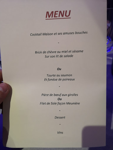 Une ambiance de cantine bruyante agrémenté d'une ambiance musicale dont les basses vous font vibrer le cœur, mais pas de la meilleure des manières !! Le Dj a vraiment l'air d'être obligé d'être là, la joie s'est lue sur son visage tout au long de la soirée... Jusqu'à un petite animation qui j'avoue était plaisante mais en plein plat chaud... Pour continuer, 40 euros de menu pour un cocktail dans un mini verre à eau, ave beaucoup de jus et une larme de rhum, 3 amuses gueules qui se battent en duel (qui ont le mérite d'exister quand même mais bon !) du chèvre miel dans une feuille de bric, le vin arrive compris dans le prix, digne d'une bouteille gratuite de pizzeria, la viande et garniture très bon, mais soit trop cuit soit pas assez.. De plus, la serveuse retire les assiettes de la table alors que je n'ai pas terminé mon assiette. Pour finir la musique extrêmement forte et omniprésente à partir du milieu du plat chaud, si vous vouliez parler, on se croirait en boîte de nuit tant la musique est assourdissante...