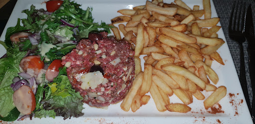 Une ambiance de cantine bruyante agrĂ©mentĂ© d'une ambiance musicale dont les basses vous font vibrer le cĆur, mais pas de la meilleure des maniĂšres !! Le Dj a vraiment l'air d'ĂȘtre obligĂ© d'ĂȘtre lĂ , la joie s'est lue sur son visage tout au long de la soirĂ©e... Jusqu'Ă un petite animation qui j'avoue Ă©tait plaisante mais en plein plat chaud... Pour continuer, 40 euros de menu pour un cocktail dans un mini verre Ă eau, ave beaucoup de jus et une larme de rhum, 3 amuses gueules qui se battent en duel (qui ont le mĂ©rite d'exister quand mĂȘme mais bon !) du chĂšvre miel dans une feuille de bric, le vin arrive compris dans le prix, digne d'une bouteille gratuite de pizzeria, la viande et garniture trĂšs bon, mais soit trop cuit soit pas assez.. De plus, la serveuse retire les assiettes de la table alors que je n'ai pas terminĂ© mon assiette. Pour finir la musique extrĂȘmement forte et omniprĂ©sente Ă partir du milieu du plat chaud, si vous vouliez parler, on se croirait en boĂźte de nuit tant la musique est assourdissante...