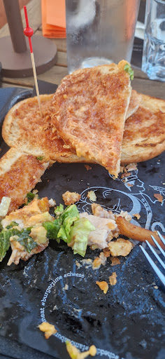 Read moreBelle découverte que ce rooftop avec vue sur la mer, situé à deux pas d’un parking pratique. L’ambiance est agréable, avec une déco sympa, une musique rythmée mais pas trop forte, et une fréquentation familiale en journée. Nous étions 4 adultes et un enfant de 5 ans pour un déjeuner. Arrivés vers midi et quart, l’endroit était encore calme mais s’est vite rempli – la réservation était clairement utile. L’accueil a été correct dans l’ensemble, même si certains échanges avec le personnel nous ont laissés un peu perplexes : certaines réponses nous ont semblé condescendantes ou ironiques, sans qu’on sache si c’était de l’humour mal dosé ou autre. Le service n’est pas très rapide, mais reste poli. Les plats sont généreux et globalement bons, même s’ils nous ont semblé un peu gras et difficiles à digérer. Le rapport qualité/prix est correct pour la région. La vue est vraiment l’un des gros points forts du lieu. Quelques points négatifs à noter cependant : Il serait appréciable de séparer les zones fumeurs et non-fumeurs : le vent ramenait toute la fumée de cigarette sur notre table, ce qui était désagréable, surtout avec un enfant. Les glaces sont servies dans un simple verre alors que le menu les présente dans une grande chope à bière, ce qui crée une petite déception (contenu plus réduit). Le système de paiement est maladroit : un écran impose un choix de pourboire même si le service est déjà inclus – cela met mal à l’aise. De plus, 2 € de frais sont appliqués si vous payez vous-même via le QR code alors que vous faites tout le travail vous-même dans ce cas. En résumé, un endroit agréable pour profiter d’un moment en famille, amis ou couple, avec une vue magnifique, mais quelques ajustements de service et de gestion seraient bienvenus pour rendre l’expérience...