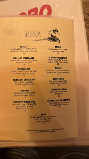The food was absolutely delicious. We started with the sea bream ceviche, which was super fresh, tangy, and beautifully balanced. It had a citrusy brightness that worked really well with the texture of the fish — a perfect starter. I also ordered the eggplant parmigiana, and it was one of the highlights of the night — rich, comforting, and full of flavor. The pizza was excellent as well — thin, crispy crust with quality toppings and perfect seasoning.