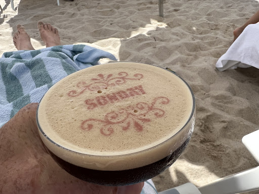 The people in front of us were super high maintenance. Like next level spoiled rotten high maintenance. When the lady would come back from the beach she would want here cushions swapped out. If the help did not bring her fresh towels directly from the dryer for her new cushions she would refuse them and demand new towels. The towels could not be set down anywhere or they would complain they were dirtied and refuse them. The towels had to be put directly on their seats immediately. It was entertaining to watch while we sipped our espresso martinis chuckling at their own self misery and chaos. The staff was incredible and attended to their outrageous requests without a problem. Very impressed by the staff and their professionalism while watching.