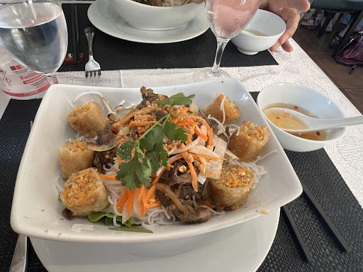 The place doesn't look like much from the outside, but don't be fooled. The food is absolutely delicious, they know what they are doing. We tried the shrimp with vegetables, the Pho-bo and the noodles with beef and all 3 were fresh and tasted amazing. The service was also very, very nice and attentive. The only downside was the red wine by the glass, we left ours basically untouched as it was horrendous. But we came in for the food, not the wine, so...