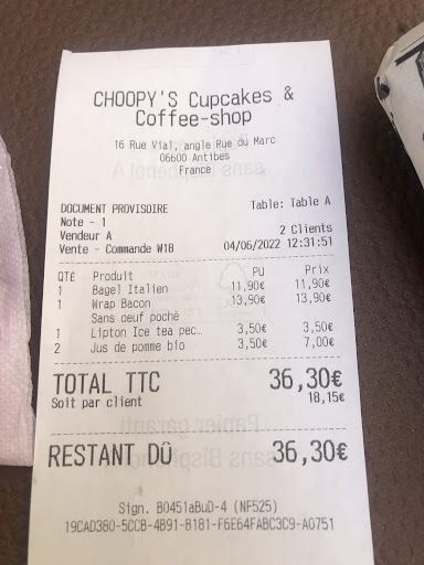 Read moreI spotted this place through an archway while waiting for my wife and son to finish shopping around the corner. I have to admit, I was first attracted by the sign that proclaimed, "Free Wi-Fi" as we were only going to be in port for the day and I wanted to take care of some work. When I discovered Choopy's offers beautiful (and subsequently determined very tasty) gluten-free cupcakes and other items, I knew I had hit the jackpot. My wife, daughter and son are all gluten-intolerant and finding tasty gluten-free food while traveling is like hitting the lottery. The young couple who owned Choopy's could not have been any friendlier and the young woman who waited on us (and practiced her english, which was already very good) was sweet and charming. Our lunch was delicious and priced very reasonably. While we visited Cannes, Antibes and Nice that day, my favorite experience was our short time at Choopy's. I highly recommend you seek it out if you find yourself in Antibes. You...