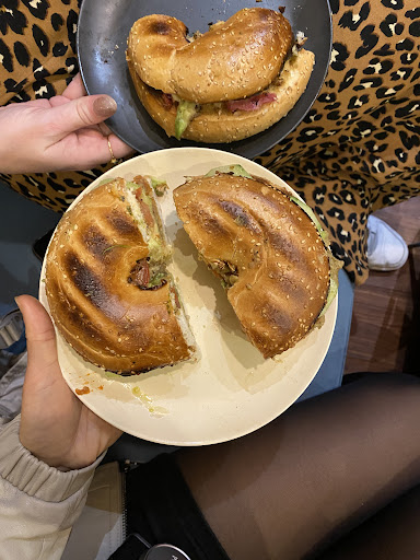 Read moreReally yummy bagels and the menu option is a pretty great deal for a meal — 9.90€ for a bagel sandwich, muffin, and small cold drink. The inside and cute with different wallpaper, couches and seating areas, and a bookshelf. I would recommend it as a spot to grab a meal or a snack and sit and chat with friends, just obviously a little pricier than grabbing a croissant or baguette from a bakery!