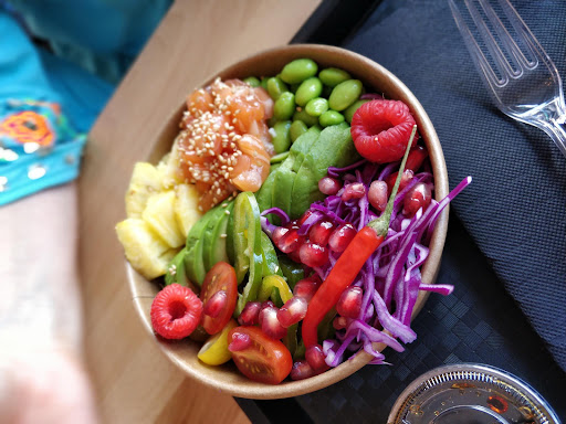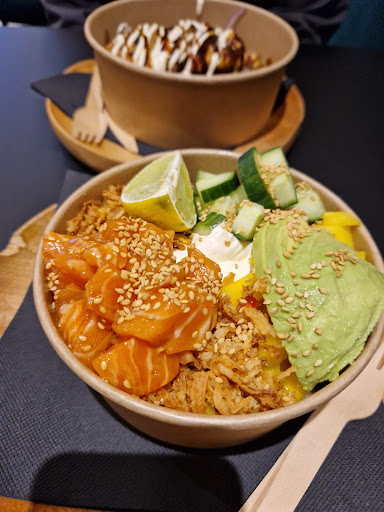 Read moreUn des meilleurs healthy "fast-food" que j'ai vu ! Les plats sont super bons, copieux et variés. Il y en a pour tous les goûts, du doux au piquant, pour les vegans comme pour les personnes qui mangent de la viande. Chaque menu a une base (Riz, avocat, Grenade, Mangue, Wakame etc.) pour laquelle on choisit une viande (Poulet, saumon cru, thon cru ou tofu) ainsi qu'une sauce (Coco, wasabi, aigre douce, sésame, etc). Il ne vous reste plus qu'à déguster avec baguettes en bois ou fourchette pour les moins agiles. Point très intéressant, ils livrent avec Uber eats sans frais sur Cannes et les villes alentours. Il existe aussi des menus pour le midi qui offrent des réductions si vous êtes étudiant ! En revanche, il faudra compter un budget un peu plus élevé en comparaison avec un fast food usuel : Entre 10€ et 15€. Mais vue la quantité et la diversité des aliments de chaque plat, c'est largement...