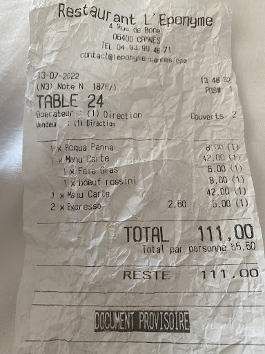 Read moreThe food was absolutely wonderful here! We recommend the restaurant very much for anyone having a short stay in Cannes. The fresh catches of the day like lobster are very nice. The meat is very tender and tasty, so also very good. The squid starter was one of the best squid dishes we have had jn france! The desserts were also very good, but the cheeses weren’t exactly to my taste as it was just goat’s cheese. However, the creme brulée was wonderful! The cocktails were also very tasty, but not worth the money… The service was not the best in the beginning but in the end they...