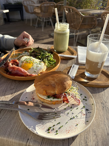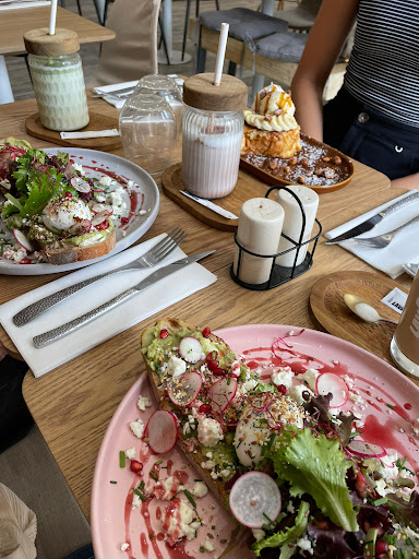 Read moreWas a nice surprise. We came through this place leaving Cannes to a trip to Barcelona and we loved it. Food is EXCEPTIONAL, as a fan of pancakes we give them 5 stars. Also you have 3 options of veg milk, the space is dog friendly (there’s a cute dog inside) and you can park nearby. Is a...