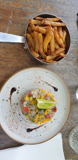 Read moreTrès mauvaise expérience ce jeudi 22 août 2024 (en fin de service du midi). Hormis le temps mis à nous apporter les cartes, puis à prendre les commandes alors qu’il n’y avait plus beaucoup de clients, l’accueil du serveur a été glacial, voire grossier lorsque nous avons répondu, en fin de repas, à sa question concernant notre satisfaction à propos du repas. Crime de lèse-majesté, nous avons en effet osé faire une petite réflexion sur la taille réduite du plat de tartare de saumon (facturé quand même 25€…) que j’avais commandé. Le garçon nous a toisées en nous demandant « où ça ? ». Ce à quoi j’ai répondu en souriant qu’effectivement le tartare était si petit qu’on ne le voyait pas, et que visiblement il ne l’avait pas vu non plus… L’humour n’étant pas le fort de ce jeune homme, il a fait ostensiblement appel au deuxième garçon pour ne plus avoir à nous servir lui-même.