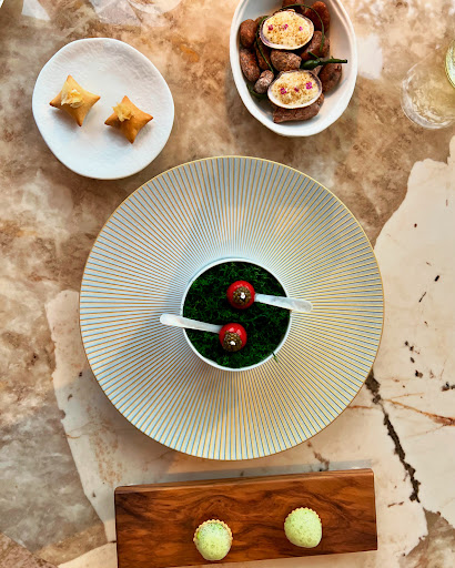 Now the service. I can't really fault the service in any way in terms of actual service. What I mean is: plates were cleared when meant to, table was cleaned and reset when needed, dishes were explained properly throughout. However. If you were to swap the waitstaff with robots, there would be no difference. Everything was 'step 1, step 2...' Very few smiles and no personality was ever shown. It felt very cold and soulless. Which is the exact opposite from the food that was full of heart passion. At first I thought maybe it was a language barrier since we speak very little French. But upon observing other tables, nothing changed and no meaningful conversations were had. Another aspect which I don't really agree on but I know some praise; is the orchestrated tables clear. One waiter would clear my plate while another cleared my wife's. I get it, it looked professional and minimises risk of dropping a fork. But if it were just one person some conversations could be started.