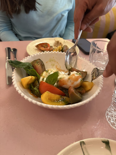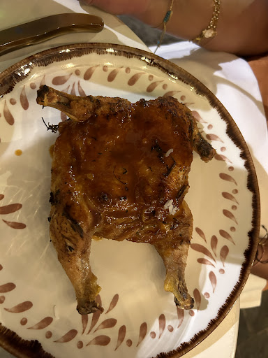 It is a restaurant located in the center of Cannes that has tables on Rue bivouac Napoléon Citronelle and Sq. Mérimée, but also in a very large interior room with a very modern decoration. We had made an online reservation to dine there on our first night in town, but we were so excited that we dined there the next day as well! The staff were very kind and pleasant, especially the waiter who served the interior was very kind and funny! At our first dinner we tried pistacchio pinsa, carbonara and linguini with burrata. At our second dinner we tried spatchcocked spring chicken and black angus rib eye. Both dinners were amazing and were the best we had on the Côte d'Azur. In addition to being very tasty, they were also very filling, since the portions were large. There is a long wine list and we liked...