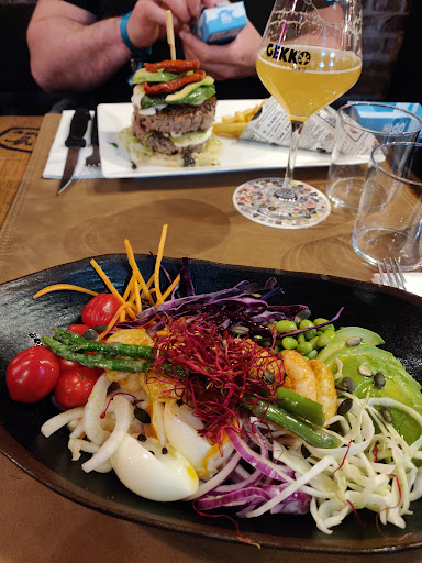 Read moreQuel dommage que les prix gâchent l'expérience. La cuisine en soi est correcte, mais rien d'extraordinaire non plus (pas de fait maison, belle présentation pour mon bowl, mais les tomates hors saison prête à explosés et l'oeuf mollet froid ne font pas bonne impression, de plus des oignons rouges dans mon plat qui n'étaient pas préciser sur le détail du menu) Le gros plus sont le côté et choix de bière assez chouette ! Le service est agréable, le lieu est sympa. Le gros hic vient surtout du prix. 8€ un chocolat chaud ? Aller. Par contre les desserts tous à 11€... , C'est vraiment exagérer. J'en ai oubliée la photo de la mousse au chocolat de mon compagnon tellement je m'attendais à au moins un peu plus de quantité. Encore heureux, il y avais un prout de chantilly à côté du pauvre verre de mousse, parce que sinon ça aurai fait sacrément vide ! Nous sommes dans la restauration également, je veux bien comprendre d'augmenter les pris sur le coup du tourisme, mais il y a quand même des limites, et pour le coup, comme je n'ai pas trouver le rapport qualité/prix, je trouve que la limite du respectable est dépassée. Honnêtement j'aurais très bien pu prendre un dessert à 11€, là n'est pas le soucis. Mais je préfère être frustrée de ne pas avoir eu de dessert, plutôt que d'avoir eu un dessert et être frustrée de l'avoir payé le double de sa valeur. Bref, au lieu de partir content d'avoir bien mangés, nous sommes partis en ayant mal aux fesses. (Environ 40€/personnes, nous étions 3 et avons consommés : 4 boissons, 3 plats...