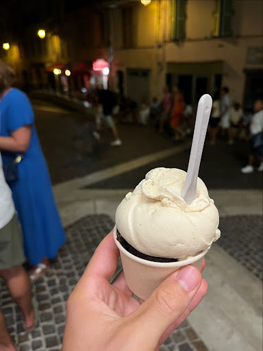 Located at the foot of a Church in Cannes, this place is so good. It was so good that we came back for second and third scoops! Flavours tried: almond with orange jam, coffee, and catalan cream (scoops 2 and 3 didn’t make it to the pictures... we forgot and eat them right away!)