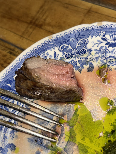 The food was really good, although a bit small portion. The little garden area with a huge tree in the middle was very cosy! We got there when they opened at 7PM and were lucky we got a table right under the tree. It quickly started to get busy. So be there when they open! But sadly, the service was really really bad. Started with us asking the waiter what red wine they would recommend to the beef. Got a quick and short answer back that they don’t drink red wine. Ok…? We asked then which wine is full-bodied out of the ones on the list. Again, in a short and a bit rude manner the waiter said they don’t drink red red wine.