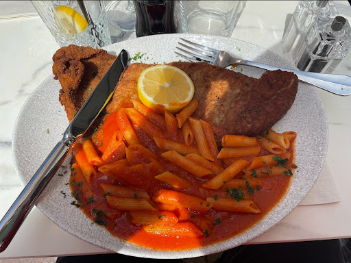 Read moreI don’t know what’s the name of this pasta cuz it was recommended by a French friend but the pasta itself was fresh and it’s sauce which is the most important thing for a pasta in my opinion , was so tasty and the amount of spices was really good . However the Beef/Veal schnitzel was not bad but I’d personal prefer a menu with more meat/chicken options or even as a side for a pasta . The service was great , but the outside tables was near the street so cars and motorcycles just passing by was annoying and you always think they...