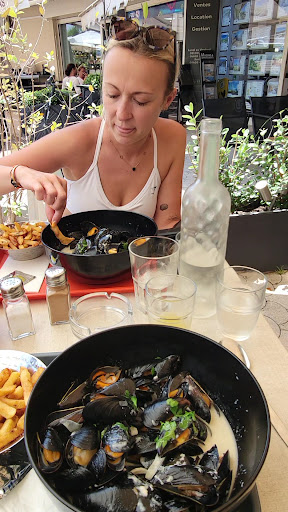 Read moreNous avons été ravis de découvrir ce super restaurant, très agréable, accueillant et très bien situé. Nous sommes Belges et grands connaisseurs des moules, que nous adorons. Nous avons donc été comblés, avec des moules délicieuses et un grand choix de sauces, toutes aussi succulentes. Et les desserts, surtout le fondant au chocolat, fait maison, ravira tous les palais ! Un délice ! La dame qui nous a servi est très sympa, accueillante, souriante, aux petits soins et les prix sont très abordables. Les gens qui osent dire, ici dans leur avis, que le personnel de ce restaurant est désagréable, ou que les plats sont mal servis, ou que les prix sont chers, sont des menteurs, des gens compliqués, des éternels insatisfaits et des exigeants ! C'est honteux de critiquer ce super restaurant, où tout a été parfait pour nous. A propos des prix, qu'ils viennent voir le prix d'un plat de moules en Belgique, bien plus cher qu'en France et ils se taieront ! 1kg500 de moules natures, en Belgique, coûtent 29,5 €, au lieu de 21 € dans ce restaurant ! Et si vous voulez une sauce, il faut compter 31 € par personne ! Tout est plus cher en Belgique, dans tous les domaines, alors, amis Français, arrêtez de vous plaindre et soyez heureux de faire vos courses et de bien manger avec des prix très abordables et très honnêtes. Nous recommandons vraiment ce restaurant, tout est parfait, délicieux et nous y reviendrons...
