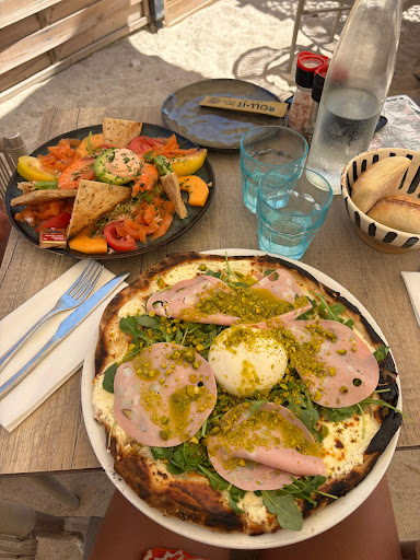 I would love to give two ratings: 5 stars for food (tuna tartar, salmon risotto), location (beach, music, surrounding) and most of the staff (incl. one waitress with glasses that did a wonderful job) and 0 stars for the ignorant waitress that told my wife that she/we are supposed to order in perfect French and that she expects people that eat there to order in French. She said it in a very mean and aggressive way and the situation nearly brought the manager in play but the nice waitress from the next table helped and took our order.