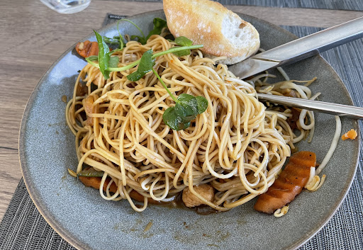 Read moreNote très mitigée. Pour ce qui est de l’établissement en lui-même il est propre et accueillant même s’il manque légèrement d’entretien. Pour ce qui est de la qualité de la cuisine, c’est un 10/10 rien à redire nous avons même eu le plaisir de voir le chef, nettoyer ses assiettes et se soucier de la présentation de ses plats. Malheureusement, cet établissement fait état d’un point négatif : l’ambiance. En effet, nous avons pu voir la serveuse littéralement courir tout au long du service, tandis que sa supérieure (Karine) ou en tout cas nous l’avons supposé n’a fait que se plaindre qu’elle n’était pas assez aidée alors que cette même personne prenait le temps de parler 10 min avec ses clients de la pluie et du beau temps, faisait des aller-retours parfois les mains vides, obligeant la serveuse à se démener pour faire le travail pour deux. Précisons tout de même que ces deux femmes ont probablement le même âge et qu’il ne s’agit donc pas d’une apprentie serveuse sans expérience… Voyant que la serveuse se faisait réprimander à chaque oubli ou à chaque client qui se permettait de se lever, nous avons carrément eu de la peine et n’avons pas osé faire de demande ou nous lever pour aller chercher du sel ou du poivre, de peur qu’elle se fasse encore reprendre par notre faute. Le manque d’investissement de Madame Karine a littéralement obliger le chef à sortir de cuisine pour amener les plats sur le comptoir. J’ignore même comment la serveuse parvient à garder le sourire devant les clients, à être aussi sympathique et à ne pas éclater en sanglots en plein service… Cet établissement fait partie de ceux que nous aurions eu plaisir à visiter à nouveau pour nous essayer à d’autres plats succulents, malheureusement cette ambiance étant trop pesante et difficile à supporter, nous préférons ne plus y mettre les pieds. Si toutefois vous êtes restaurateur et que vous passez par là, c’est une serveuse réellement compétente et investie qui aurait sa place dans bien des...