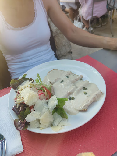 Our starters were mozzarella with pesto and vitello tonnato. Both tasted fine, but knowing the bistro is part of the Michelin star restaurant Du Clos, it was a bit of a let down. Far too little mozzarella for the amount of tomatoes with no care for plating.