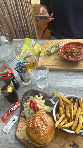 Nous avions fait une réservation pour un dîner, nous avions préféré manger à l’intérieur car nous avions eu peur d’avoir trop de bruit par rapport à la route qui passe à côté de votre terrasse. Nous sommes arrivés à l’heure pour notre dîner, et nous nous tenions debout derrière le bar à attendre que l’on vienne vers nous. Le serveur qui nous a bien vu, nous tournait le dos, occupé à préparer une cocktail pour quelqu’un de son équipe puisqu’il a été l’amener en cuisine. ce n’est qu’au bout de deux minutes qu’il a enfin daigner nous dire bonsoir et nous parler, on lui a dit que nous avions réservé pour dîner en salle. Le problème c’est que nous ne savions pas qu’il y aurait une musique d’ambiance dans la salle, et je dirais même la sono poussée à fond, pas agréable du tout qui envahissait toute la salle. C’était vraiment quelque chose d’assez dérangeant et personne ne peut manger, passer du temps avec ses amis ou sa famille dans ce brouhaha, donc nous avons demandé de voir la terrasse où, c’est vrai, la plupart des gens étaient installés pour dîner (ou pour moins entendre la sono !) il nous a bien trouvé une place, mais on entendait encore trop la musique. Du coup on a posé la question à savoir est-ce qu’il est possible de baisser la musique pour que ce soit plus agréable, et là le serveur nous indique que il ne peut pas baisser le volume de la musique d’ambiance, car sinon ceux de la terrasse ne l’entendent plus ! C’est incroyable cette réponse ! Mais qui peut supporter de dîner avec un fond sonore pareil ? Nous avons décidé que ça c’est impossible pour nous et du coup nous sommes partis, c’est vraiment très décevant de sa part on a pas compris pourquoi il fallait absolument supporter cette musique, de très mauvais goût d’ailleurs, et pourquoi si fort ? Quel est le but pour vos clients de manger avec un...