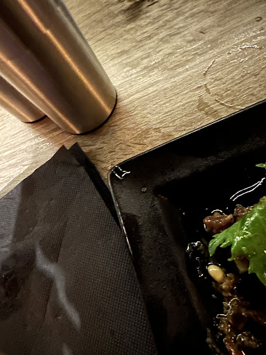 Nous nous sommes rendu dans cet Ă©tablissement mais alors déçu mais vraiment, nous arrivons notre table ce trouve devant le dj et sur la piste de danse donc dĂ©jĂ moyen pour le calme en plus la musique beaucoup mais beaucoup trop forte nous ne nous entendions mĂȘme pas discuter entre nous, les gens parlait trĂšs trĂšs fort donc un brouhaha monstre dans le restaurant. Mais arrivons Ă notre repas nous commandons, nous avons attendu plus de 1h entre notre arrivĂ© et le service des plats et nous avons eu plusieurs problĂšmes des plats peu copieux pour le prix et manque d assaisonnement mais le pire du pire c est trouvĂ© un morceaux de paille de fer dans les frites et quand nous le faisons remonter il ne nous offre pas le plat non non!!!! Mais le coca super a 3,5⏠vu la gravitĂ© de la choses je trouve pas cela normal.