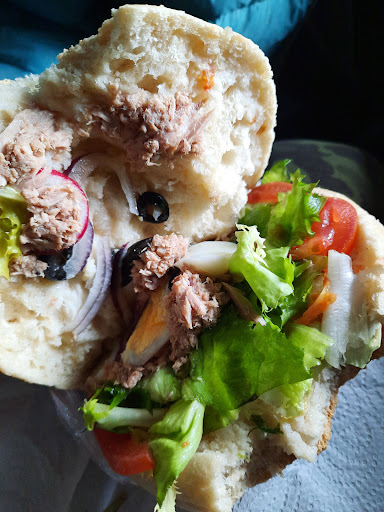 Read moreDans les 3 PanBagnats achetés, beaucoup trop de salade verte, 1 olive coupée en rondelles, 3 rondelles de radis, 2 fines tranches de tomate, 2 rondelles d'œuf, un peu d'oignon, et 1 cuillère à soupe de thon, pas d'anchois, et encore de la salade verte (volume pas cher!). Pas d'huile du tout , pas bagné, donc pas d'assaisonnement. C'est un sandwich salade forme ronde. (6€/pièce ) Oui j'ai démonté le PanBagnat Rien à voir avec ceux du truck PizzaBocca =...