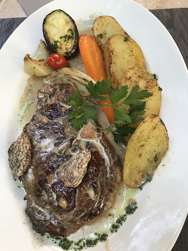 Le Petit Prince 🤴tout un programme ! D'autant que l'histoire du restaurant avec l'histoire de la maman de St Exupéry qui a vécu à Cabris est un bel hommage ! Côté cuisine. Correcte comme à la maison mais sans surprise et sans thématique particulière. Déjeuner à deux. Serveur agréable qui connait les bases de services. Restaurant traditionnel avec poutres apparentes et table sans fioritures. Serviettes en papiers et sets en plastiques ... Moyen ... On espère que la cuisine soit plus sympa. Le titre "Maître Restaurateur" est d'ailleurs pour nous mettre en bouche et en confiance. A l'arrivée : nous avons pris deux menus à 38 euros. A ce prix on se dit que les plats vont être plutôt hauts de gamme. Les entrées : veloutés de courges et potimarrons. Pas d'autre choix c'est dommage. Le velouté est bon et bien présenté. Les plats : sauté de poulet au chorizo. On se dit que le plat va être surprenant... Pas du tout. Hormis une présentation assiette comme j'aurais pu le faire on mange comme à la maison. C'est correct mais c'est décevant. Un peu d'imagination ! Desserts au choix crème brûlée ou moelleux chocolat... Décidément 🥲 C'est dommage le restaurant est bien placé mais les prix sont trop élevés par rapport aux plats. On est déçus. On peut faire beaucoup mieux ! L'ambiance est glaciale dans le restaurant comme la chef en cuisine qui pourrait arborer un joli sourire ce qui mettrait sans doute plus en valeur le restaurant. Enfin on a pas aimé : on nous a servi du pain baguette décongelé. On est dimanche c'est vrai mais pour un menu à 38 euros on est en droit d'attendre...
