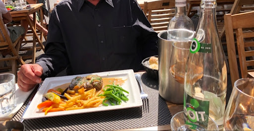 We booked a table, and after a walk around the town, returned for lunch. We ordered from their Menu Epicurien. Fois gras to start, followed by magret du canard, then I had fromage, my partner 2 scoops ice cream. The fois gras was a thin slice, about 8mm thick, served with toast and a rocket leaf salad that was too oily. The fois gras tasted alright, but nothing special. An citrus sorbet with thyme flowers was served between starter and main. The magret du canard was a simply a few very thin slices of duck breast, that was not tender, served with a mix of vegetables that were indifferent, almost tasteless and a spoon of overcooked almost mushy green beans, with a scoop of watery crushed potato. The sauce for the duck was overly citrus in flavour and quite runny. The icecream was a simple supermarket style, two scoops of coffee and vanilla. The cheese was three pieces, one thin 6mm or so slice of rolled herbed goat cheese, one small triangle of camembert and a thin slice of parmesan/granpedano. In all, not at all impressed....
