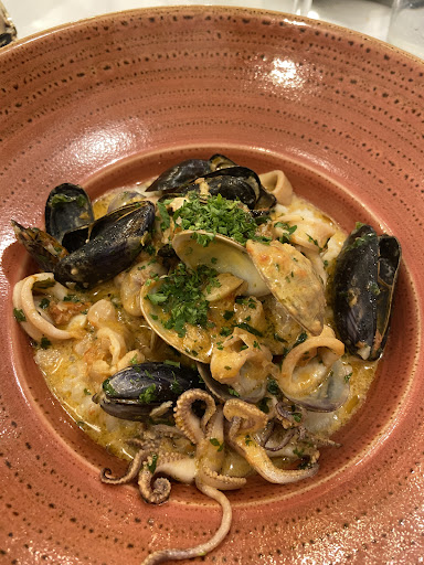 Food 0/5 - We ordered a bottle of rose, a salad and a seafood linguine. We had to ask to order and drinks took ages to arrive and then came at the same time as the food. The seafood linguine was disgusting. There was no flavour to it and worse of all, The fish wasn’t fresh and I couldn’t eat it. Worst octopus I’ve tasted. I hardly ate any of it.