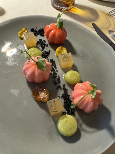 Read moreLet me start with the beautiful entrance of the hotel / restaurant! It’s an amazing place. I made a reservation for the restaurant for the wrong date but they were very flexible and we still were able to have a table for two! Big plus for the service (thanks again). The starter was great and a surprise but after that the main course was more bistro style. The dessert was annoying because of too crunchy buckwheat (and not very tasty). The cheese car was fun! But than we got the bill and they asked 24 Euro per glass of Champagne 🍾 (they did not even explain what Champaign we got served). And they asked 9 Euro for tea ☕️(per person) that didn’t...