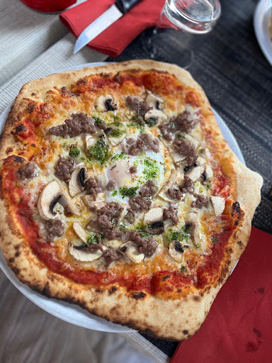 Read moreMisère, ce restaurant est un piège ! La nourriture est très bonne, le personnel super, les tarifs dans les normes... J'en ferais volontiers ma cantine, si je le pouvais. Les pizzas sont faites au four à bois, derrière un comptoir. Tout le monde peut voir la préparation et la cuisson. Tout est très propre. Une jolie chienne (malinoise, je crois), fan de sa balle, mais assez réservée, vient nous assurer une companie discrète. Elle ne vient pas embêter les gens qui mangent et m'a apportée quelque fois sa balle pour jouer quand j'attends une pizza à emporter et qu'il n'y a pas trop de monde en terrasse (elle connait bien mon chien). Ce qui est toujours cool ! Bref, j'aime ce restaurant, j'adore le personnel, je vais souvent y chercher le repas du soir, quelque fois j'y mange en terrasse avec mon fiancé et c'est toujours agréable.