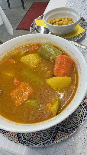 Read moreCest la première fois que je laisse un commentaire négatif sur un restaurant ! La cuisine est très fade, le cadre est de très mauvais goût (grand tableau orientaliste représentant une femme maquillage criard en tenue suggestive avec une chicha à la bouche). Nous étions venus en groupe de 10 collègues et le patron au moment de la prise de la commande m'a littéralement incitée à prendre de l'alcool tout en cherchant à me mettre mal à l'aise devant les collègues car j'étais la seule à prendre un soft. Vraiment pas digne de l'accueil chaleureux et respectueux des marocains. Le pompon c'est quand j'ai demandé à mettre le reste dans une boite à emporter car je n aime pas jeter la nourriture , apprends l'avoir emballé, au moment de l'addition j'apprends que le doggybag esr à 5 euros! Un SCANDALE! Payer une boite en plastique c'est la première fois que je vois ça. Un conseil avisé d'une vraie marocaine: fuyez ce restaurant! Vraiment indigne de notre belle gastronomie et de notre sens...