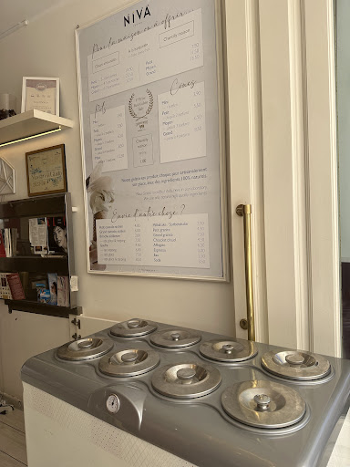 Vivendo a Cannes da quasi sei anni, Niva è il luogo dove vado con più piacere in assoluto per una pausa relax. Anzi, da quasi tre anni è il mio bar preferito! Perché è uno dei pochissimi posti dove mi passa immediatamente la nostalgia di casa. I ragazzi italiani che lo gestiscono sono delle perle di gentilezza. E di sicuro non dev'essere facile restare sulla piazza di Cannes, e produrre sul posto un gelato artigianale di tale bontà, con tre gelaterie francesi ed una americana (finto danese) a pochi metri di distanza... e soprattutto se si pensa ai prezzi stellari delle locazioni commerciali in centro città ed al fatto che in inverno non arrivano molti turisti che mangiano il gelato... Ma in effetti è la stagione ideale per il tipico residente permanente italiano che non ama nè il caldo torrido, né la pioggia, nè tantomeno fare la fila in piedi al bancone, preferisce trovare facilmente un posto in terrazza (attrezzata con stufe e plaids), ha un bambino terribile che anche a Natale divora tanto gelato (solo di ottima qualità) ed ha una moglie cioccolata-calda-dipendente. E allora io auguro a Niva una vita lunghissima ed uno strameritato successo a Cannes, perché prima del loro arrivo eravamo costretti ad attendere la gita mensile a Sanremo per mangiare un gelato dignitoso!