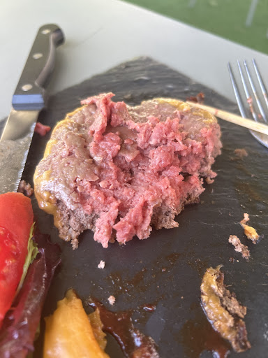 We ordered a grill plate, a beef burger menu, and a 400 g grilled entrecôte. There was no children’s dish on the menu, so when our 11-year-old daughter (who actually had already eaten before) asked only for a crème brûlée, the staff insisted she must order a full meal as is the restaurant policy that everyone needs a full dish - also 11 years old kids (and no Kids dish on menue btw) Despite explaining she wasn’t hungry for a main course, we were told to place another full-size order or leave. With the late hour, we felt compelled to order an additional entrée, resulting in far more food than we could finish.