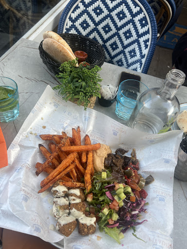 Read moreFood was pretty mid, does not match the reviews of 4.7 stars. i got the greek grill plate which was €19.5 which did not match the price at all. Chicken was somewhat yummy, the salad was tiny, chips were dry, yoghurt was basic and rice wasn’t very yummy. The pita breads were dry and felt like they came from a supermarket and had been lightly microwaved. Another of the people at the table had gotten falafel plate, which again had pretty basic food, the falafel’s felt out of a supermarket. Two others had greek salads which were overdressed, mushy, some nice flavours but didn’t work together. The non-alcoholic drinks (juices mainly) came in plastic smoothie cups which felt not environmentally friendly and just cheap. Service was...