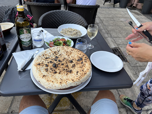 Sunday night treat while on holiday here in our campervan. Having watched the locals playing boulle we wander here at opening time. Super restaurant. Great food at a reasonable price. Our waiter spoke perfect English and his recommendations were spot on. Loved meeting the 82 yr old family member who was a delight to chat to. We had a half & half pizza starter. The base was super thin and the toppings delicious. Lasagne and Penne Amatriciana were perfect. For desert Tiramisu and Rum Baba, the later was probably the best desert I have eaten. 79 euros including a bottle of white wine. Excellent....