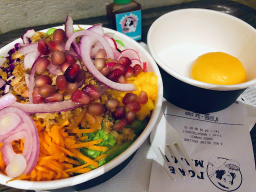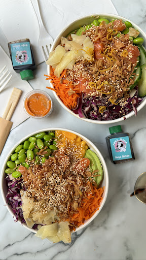 Read moreSuite à mon troisième passage chez "POKE MAMA", je décide de laisser un commentaire qui malheureusement sera plutôt négatif. Après l'ouverture de la boutique, je me suis dis "Cool ! l'endroit à l'air frais". De l'extérieur ca semblait prometteur, mais en y regardant de plus prés l'endroit est tristement dans la même veine que tous ces "bars à salades" lambda qui fleurissent un peu partout. "Des produits frais" je l'espère ! mais la qualité n'a vraiment rien d'exceptionnelle. Les fameux "poke bowls" sont allégrement remplis de leurs bases ( riz vinaigré, riz noir etc..), mais au vu du prix, les garnitures font default . Après avoir reçu mon "bowl" je décide de me rendre sur la croisette baignée de soleil pour prendre mon déjeuner. Et quelle stupéfaction fut mienne lorsque je découvris que le préparateur de ma commande avait oublié d'ajouter un microscope pour que je puisse trouver les différents éléments de mon plat. Quelques minuscules dés de thon, de très fines tranches d'avocat, des portions de légumes lilliputiennes, mais par contre un bol rempli quasiment à ras bord de riz ! Quelle tristesse ! soyez généreux ! si vos produits avaient été bio et de grande qualité j'aurais à la limite pu comprendre et encore ! Le fait d'avoir une boutique bien placée en centre ville ne...