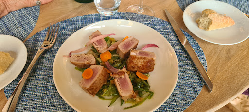 Read moreI visited the restaurant last September and was so impressed my wife and I visited today. They simply keep on improving in all aspects. (1st) the lunch menu today was a home smoked salmon cut thickly and made into rings with a cream sauce laced with orange juice. The salmon had a filling of I believe tapenade and it was delicious and very different. The main cotse was cod cooked to perfection with a superb sauce and small potatoes boiled in their skins, plus cherry tomatoes. The desert was a large biscuit filled with cream. The service was fantastic and having been involved in high tech turnarounds as CEO i spotted a team that were motivated and worked well together. Our waiter was a student from Chile (were there is a relationship with Begude) The individual was still learning English and had picked up a little French but he really tried hard and it was nice for my wife to appreciate the adventure he was taking to come to France to learn the trade..very heart warming! I take my hat off to the management of this establishment and the attention to detail they clearly have ..highly recommended and it only cost...