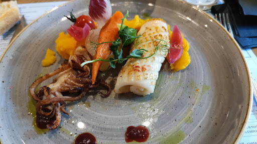 After this interesting entrée, we ordered the main course. The choices here were quite variegated, from classic lasagna and pizze to beef tartare and calamari alla plancha. That last one was my choice, and a good one. Nicely roasted, the calamar was delicious, melting in mouth, served with its mashed squash.