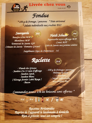 Je recommande on a pris cette option en arrivant en vacances et franchement cest topossime!!!il n'y a rien à faire que mettre lappareil en route cest pret en 5 10min et a table !!! tout vous est livré sur votre lieu vacances avec le sourire :le matériel de fondue le fromage le pain, les salades, les boissons . C'est un vrai regal le fromagz est de très grande qualité les boissons vous sont offertes. Nous avons passé un excellent moment de convivialité en famille avec des gages pour ceux qui perdaient leurs morceaux de pain . Idéal quand on rentre d'une journée de ski de ballade ou de luge et qu'on n'a pas du tout envie de cuisiner et tout ca pour 19€/personne il ny a rien a redire. L'équipe a été plus qu adorable de la commande à la livraison. Tout est parfait on renouvellera lexperience au cours de la semaine,vraiment tentez...