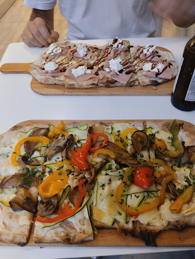 Une très belle découverte sur Grenoble ☀️ J’ai opté pour une pizza végétarienne avec tomates veri, poivrons, aubergines et fromage, celle-ci était délicieuse : une pâte fine et croustillante, faite maison, une garniture pleine de saveurs, on sent que les légumes sont frais, les produits de qualités et bien travaillés. Mon conjoint a choisi la pizza à la mortadelle, un vrai régal de son côté, avec une charcuterie de qualité et un fromage très frais (buratta) qui a fait toute la différence. Nous sommes ravis d'avoir découvert cette adresse et nous la recommanderons chaleureusement. Le service est attentionné et à l'écoute du client, l’ambiance conviviale et donne vraiment envie de revenir. Le seul bémol est la place dans l'établissement, si vous souhaitez venir en groupe, je recommande de réserver. C'est un endroit qui convient autant pour des repas entre amis, en couple ou en famille. Encore une fois bravo pour l'équipe, le cuisinier et l'établissement, nous avons passés une merveilleuse...