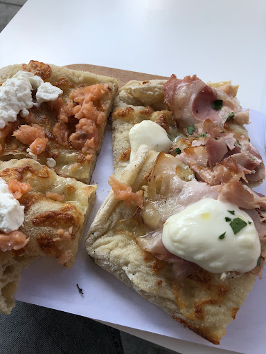 Les pizzas (ou plutôt pinsas) sont plutôt bonnes mais les prix ont vraiment beaucoup trop augmenté et rattrapent voir dépassent même ceux de vrais restaurants avec de vrais locaux et un vrai service (exemple Pizza Sana pour rester dans le coin). Un comble pour une pizzeria qui suit tous les codes du kebab, où la dame vous parle comme si vous la derangiez et coupe les pizza avec et sans viande avec les même ciseaux. Qui plus est, y manger reviens à être dérangé par le va et viens constant des livreurs qui gueulent au téléphone et se disputent parfois avec la dame dans cette toute petite pizzeria. Bonjour l'ambiance.