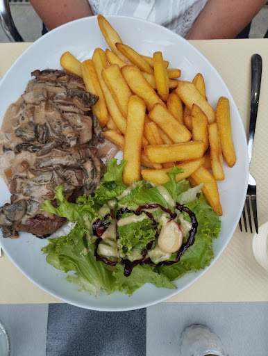 Read moreDas Restaurant liegt direkt an der Durchgangsstraße (sonst hätten wir es allerdings auch nicht entdeckt). Wir saßen auf der Terrasse, den Innenraum habe ich nicht gesehen. Eigentlich recht schön, aber auch laut. Wir rechnen es hoch an, das wir kurz vor Küchenschluss doch noch essen konnten. Das Essen war sehr gut. Speziell die Jägersauce war exzellent, anscheinend mit frischen Pilzen. Auch die Pommes frites waren hausgemacht. Nur das mit der cuisson war halt wie in vielen französischen Restaurants so eine Sache. Saignant war auch so, aber was bien cuit sein sollte, musste nochmal durch die Küche und war dann eher noch à Point. Aber das ist oft so. Dafür waren die Portionen...