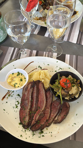 Après notre session sportive intense du dimanche matin, mes deux amis et moi étions bien tentés d'essayer le restaurant le Régaly's, situé à Voreppe. Réservée la veille, notre table nous attendait. Reçus par le très jovial Laurent, propriétaire des lieux, nous étions reçus comme des princes. Une fois assis, notre commande a été prise par Pauline, taquine et ayant toujours le mot pour donner le sourire. Pour autant, en étant d'un professionnel sans faille, nous étions parfaitement servis. Quelle fut notre surprise quant aux quantités copieuses et d'une qualité notable ! Une salade saumon, suivie d'un magret de canard avec sa purée maison et ses légumes. Un pur délice. Mes camarades ont eux aussi étaient gâtés, avec notamment une entrecôte bien charnue. Pour couronner cette belle expérience dominicale, un dessert maison, servi en terrasse. Le clou du spectacle, l'extérieur exposé plein soleil ! De quoi faire le plein de vitamine D et de contenter les plus notables mistigris adeptes de bain de soleil. C'était donc un vrai plaisir de pouvoir passer un si bon moment entre amis et nous remercions Laurent et Pauline pour leur accueil chaleureux. Nous reviendrons très rapidement pour de nouveaux midis...