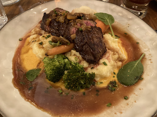 Read moreNous cherchions une bonne table où nous poser avec mes collègues après 5h de train et nous l'avons trouvée ! En entrant, nous avons pu déjà constater que même s'il y avait du monde, ce n'était pas bruyant. Ça peut paraître bête comme détail mais c est fort appréciable d'arriver à discuter sans avoir besoin d'élever la voix ! Ensuite, nous avons été accueillis avec un grand sourire et ça aussi, ça met toujours du baume au coeur 😍 Arrivent ensuite nos assiettes et nos yeux ont pu se régaler avant même nos papilles ! C est présenté avec soin, inspiration et un talent évident. Et quand vient le moment tant attendu de goûter ces assiettes si appétissantes, on ferme les yeux et on apprécie la maîtrise des associations de saveurs et de texture, la caramélisation délicate des légumes qui s'en trouvent tout simplement sublimés, la qualité de la viande... Le seul moment de tristesse est si l'estomac, pleinement satisfait de l'entrée et du plat (tous deux copieux) considère qu'il n'y a plus de place pour le dessert. Mais cela donne l'occasion de...