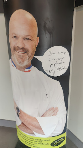 Read moreLa salle est bien tenue, avec un décor sobre. Un accueil souriant. Un serveur nous a fait prendre place. Peu de temps après, il a proposé l'apéritif et a pris notre commande. Nous avions été surpris de la carte : 5 plats aux choix, ce qui est bien, mais ils sont tous accompagnés de frites et de salade. Nous aurions préféré manger autres choses que des frites, qui doivent sortir du congélateur et de la salade iceberg du sachet... Cela nous a fait penser à la cantine... N'y a-t-il pas de spécialités locales ?! Il n'y a d'entrée ?!! Nous n'avions pas eu le temps de finir notre apéritif, que nous avions été servis. Nous avions demandé des sauces : moutard, ketchup. Le serveur a compris que nous voulions l'addition ?! Cela nous a fait beaucoup rire, puisque nous n avions pas eu le temps de goûter aux plats. Ce n est pas flatteur pour cette enseigne prestigieuse. Ensuite, il est venu chercher nos verres d'apéritif, sans nous demander si cela se passait bien, et ne nous a pas proposés de vin. Était-il vexé ?! Les gens arrivés et étaient positionnés à côté de nous. Nous étions les uns sur les autres... Les tables sont trop proches les unes des autres, ce qui enléve le charme d'un repas en amoureux... Nous avions été déçus une nouvelle fois, car il y avait de l'espace mais nous étions collés. Un peu plus loin 2 serveuses discutées, l'une d'elle, avait les fesses sur une chaise. Ce qui n est pas flatteur pour l'image de ce restaurant. Nous n'avions pas pris de dessert, car au vu de la rapidité du service nous avions pensé qu'ils n étaient pas fait maison.... rien n'est stipulé sur la carte à ce sujet... et les prix des desserts sont honteux... Nous sommes fort déçus. Au vu des émissions télévisés, nous nous attendions à tout autre chose. Nous avions fait par de nos remarques, mais il nous a été répondu que c était le concept... Philippe devrait passer voir ses restaurants, car il y a du laisser-aller... tout mettre sur le dos du concept ?!!! Ou est le plaisir de la restauration ? Nous ne pensons...