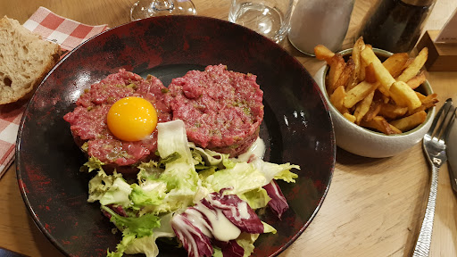 plusieurs points de deception....de dehors et en entrant cela l'air sympa... on s'installe... 4 personnes.... sur la table, un pot avec des assaisonnements en pochette.... plusieurs ont été ouvert et consommés ou pas... et remis dans le pot.... mauvais démarrage mais bon.... un oubli des employés...🙄.... nous passons nos commandes... sur un menu plastifié et froissé bien collant sorti de je ne sais où..... apero, ensuite plats... service très bien.... cotes d'agneau nickel, tartare 400 gr.. frais mais fade... dommage... entrecote à la sauce charteuse (a la carte) sans la sauce chartreuse. "ah... mais vous ne l'aviez pas demandé".... un plat végé avec une jolie mouche verte crevée au fond du plat.... on aurait pu la manger sans faire gaffe.... accompagnement des plats très limités.... frites ou purée ou légumes... si vous voulez moitié/moitié il y a un supplément... meme buffalo, ils le font gratuitement... au moment de payer nous avons eu droit a une reduction magnifique de 4 euro (un panaché) grace/à cause de la mouche... 4 apero et 4 plats pour 140 euro..... avec des sachets de moutarde, de mayo et de ketchup en accompagnement.... c'est un peu justet.....si vous y aller pour boire un coup ou pour les soirées à thème vous apprécierez peut-être mais n'y allez pas pour vous regaler.... bon sinon les serveurs sont sympa.... Pour le coup, nous n'avons pas pris de dessert ni de café.... je tiens à ajouter que le restaurant a répondu à mon commentaire avec la réponse classique qu'il donne à toutes les mauvaises notes sans aucune empathie ni véritables excuses.... Une belle réponse toute faite pour...