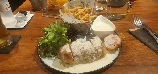 In our very pidgin French we managed to ask for a table for 2 people for that night. We were greeted pleasantly and shown to a table inside - the decor was simple but nicely thought out. The staff on the night were brilliant, and in our rusty French helping us along as well as translating when necessary (most of the time). The food was great and represented good value for money. Altogether we had an enjoyable meal there and coupled with the staffs' friendly attitude if we ever find ourselves in Grenoble again we will most certainly return. Highly recommended. Great service, good food (cordon bleau fantastic). If you're in Grenoble make time in your evening to go...