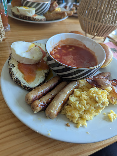 Et quelle belle surprise ! Pour 25€, le brunch du dimanche à partir de 10h est un véritable festin. Le buffet sucré est digne des meilleurs hôtels avec service tout inclus : varié et genereux. L’assiette salée est tout aussi savoureuse, composée de saucisse, œufs brouillés, avocado toast, mini burger et haricots blancs. Un vrai sans-faute.