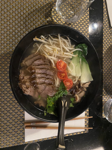 Read moreI came down with a cold, so hot noodle soup was just what I needed - and it was delicious. I also had a virgin mojito which was a refreshing mix of lime juice and sparkling water. Service was prompt and friendly. The soup was not spicy but a side condiment was offered and the chef correctly told me to be careful that it was VERY HOT. But used sparingly, it added a nice spark to the dish. The only reason for not 5 starts on atmosphere is that a child of one of the staff was watching a video on an ipad in the dining room and had the volume quite loud. I got used to it but headphones would be...